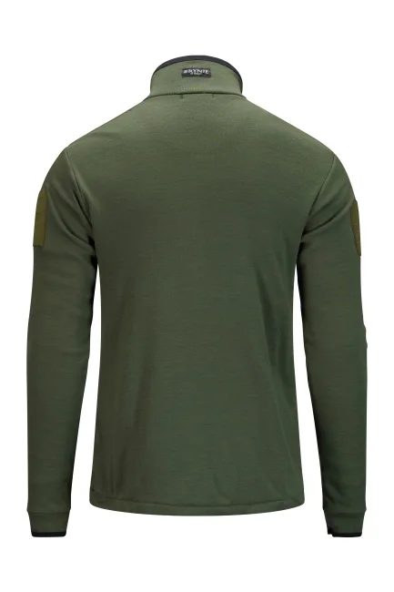 Innerlag: 100 % polypropylen mesh, 140 g/m². Mellomlag vindstopper: 50 % polyester / 50 % polyuretan, 95 g/m², kun i front. Ytterlag: 70 % merinoull / 30 % polyamid, 280 g/m² (ekspedisjonsvekt), merino 20,5 mikron. Produktvekt ca. 740 g (M). Unisex, løs passform, høy krage, tommelhull, fire glidelåslommer, glidelåsåpning under armene, snøring nederst, YKK-glidelåser. Pustende, slitesterk, maskinvaskbar og reparerbar.